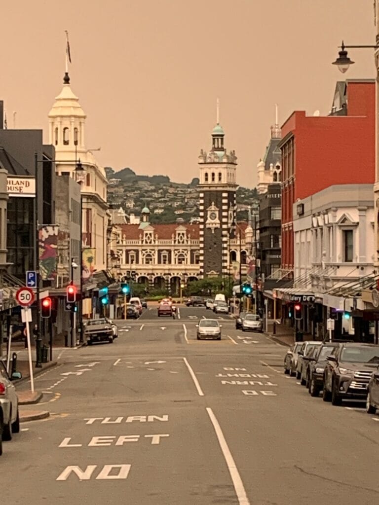 New Year’s Day was quieter. We took time to explore more of Dunedin’s streets, admired the grand railway station, and were struck by the eerie orange haze in the sky — smoke from the devastating Gippsland bushfires in Victoria, drifting over 2,000 kilometres across the Tasman Sea.