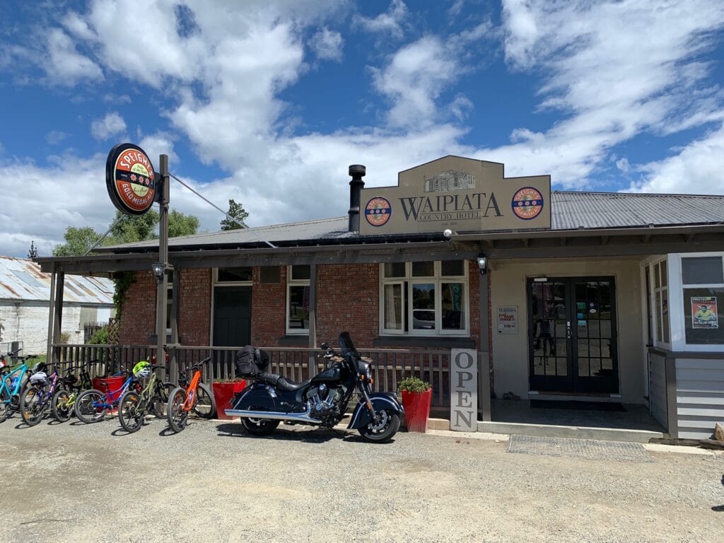 By midday we reached Waipiata, where we stopped at the Waipiata Hotel for lunch — a perfect pause in the sunshine with a cold drink and plenty of stories from the trail. From there, it was a gentle afternoon ride into Ranfurly, rolling into town early and taking time to explore its tidy main street and art deco charm.