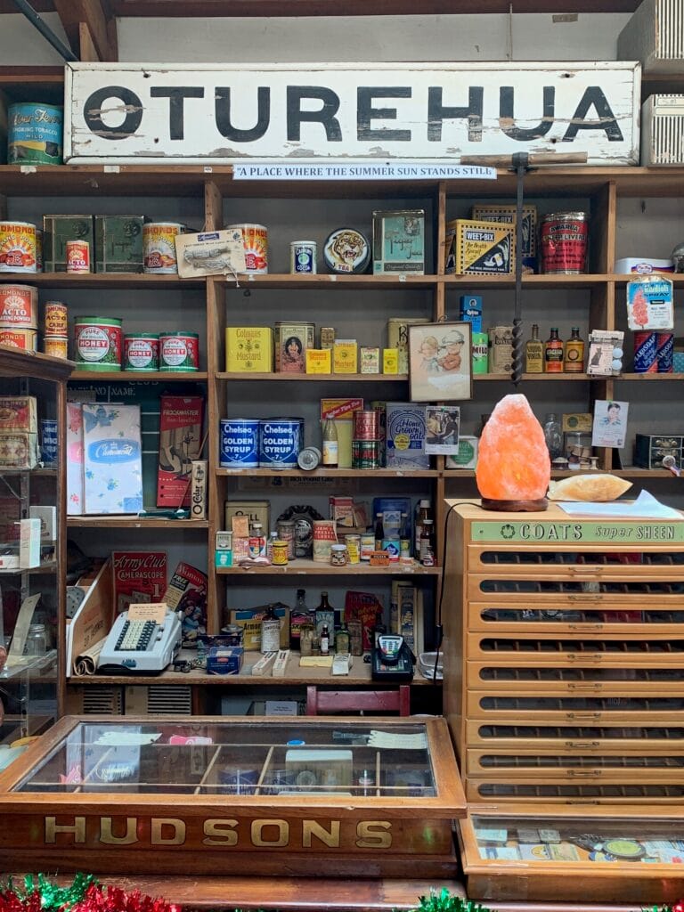 eyond the high point we reached the northernmost section of the trail before it began its slow turn southwest towards Oturehua. Rolling into town, we left the trail briefly to explore the historic T. Gilchrist & Sons General Store, established in 1902 and still filled with a mix of original fittings, old memorabilia, and modern-day treats. The boys happily stocked up on snacks while we browsed the shelves that seemed to capture more than a century of local life.