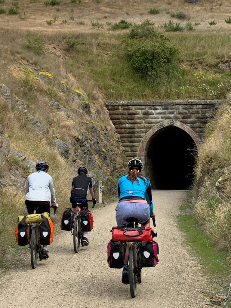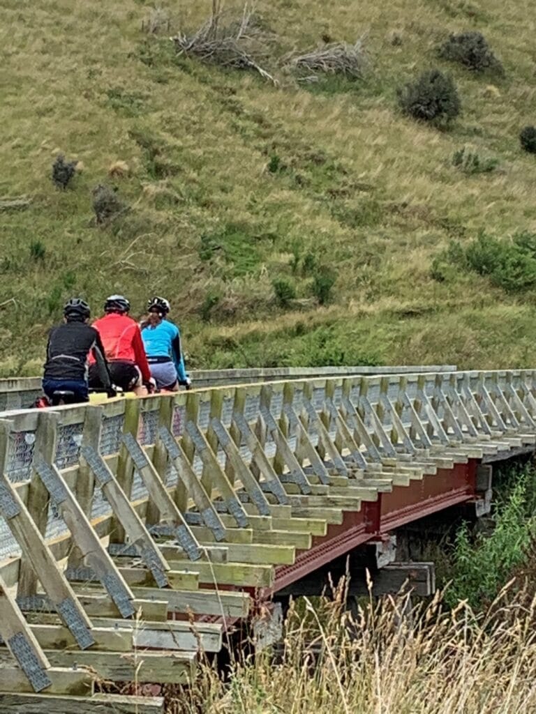 Not long after leaving town, we entered the section famous for its rail tunnels and viaducts. The two Poolburn Tunnels and the grand Poolburn Viaduct, spanning the Ida Valley far below, were absolute highlights — reminders of the incredible engineering that carved this trail through the Otago hills. From there, the track wound steadily towards Lauder, where we left the trail briefly for lunch at the Lauder Hotel — a welcome break and a chance to escape the heat for an hour.