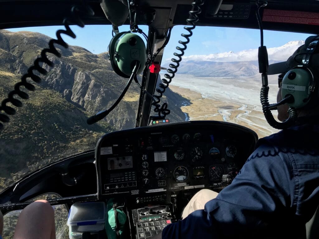 With the boys in tow, each day was planned to be manageable rather than epic — short distances, plenty of stops, and enough time to take it all in. Still, this one began in the most dramatic way imaginable. An early start took us down the Alps to Ocean Road to Mount Cook Airport, where we boarded a helicopter transfer to cross the wide, braided Tasman River that flows from the glaciers into Lake Pukaki.