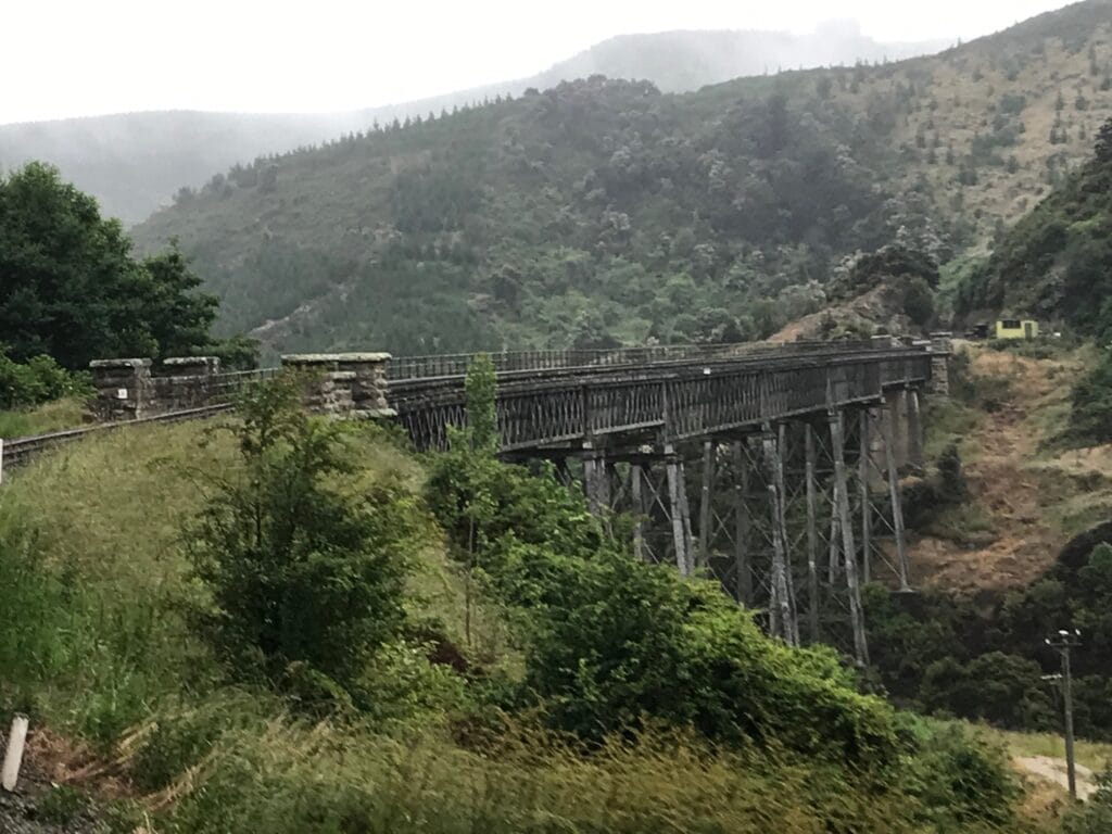 We awoke to a rainy, overcast Dunedin morning — not the perfect start to a new trail, but a fitting one for New Zealand’s ever-changing weather. With the Taieri Gorge Railway scheduled to depart at 9:30 a.m., we had time for coffee and breakfast at Joe’s Garage (joes.co.nz) before heading to the station.