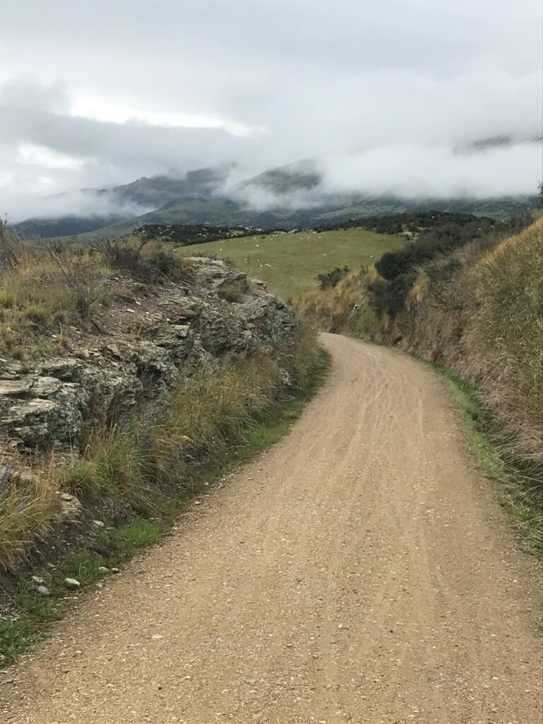 Leaving Oturehua, the trail ran across wide-open plains, the landscape raw and beautiful but offering almost no shade. The sun wasn’t yet strong but climbed quickly; the gravel shimmered, and the still air of morning soon gave way to the dry heat of midday. Thankfully, the route itself was spectacular — one of the most scenic stretches of the whole trip.