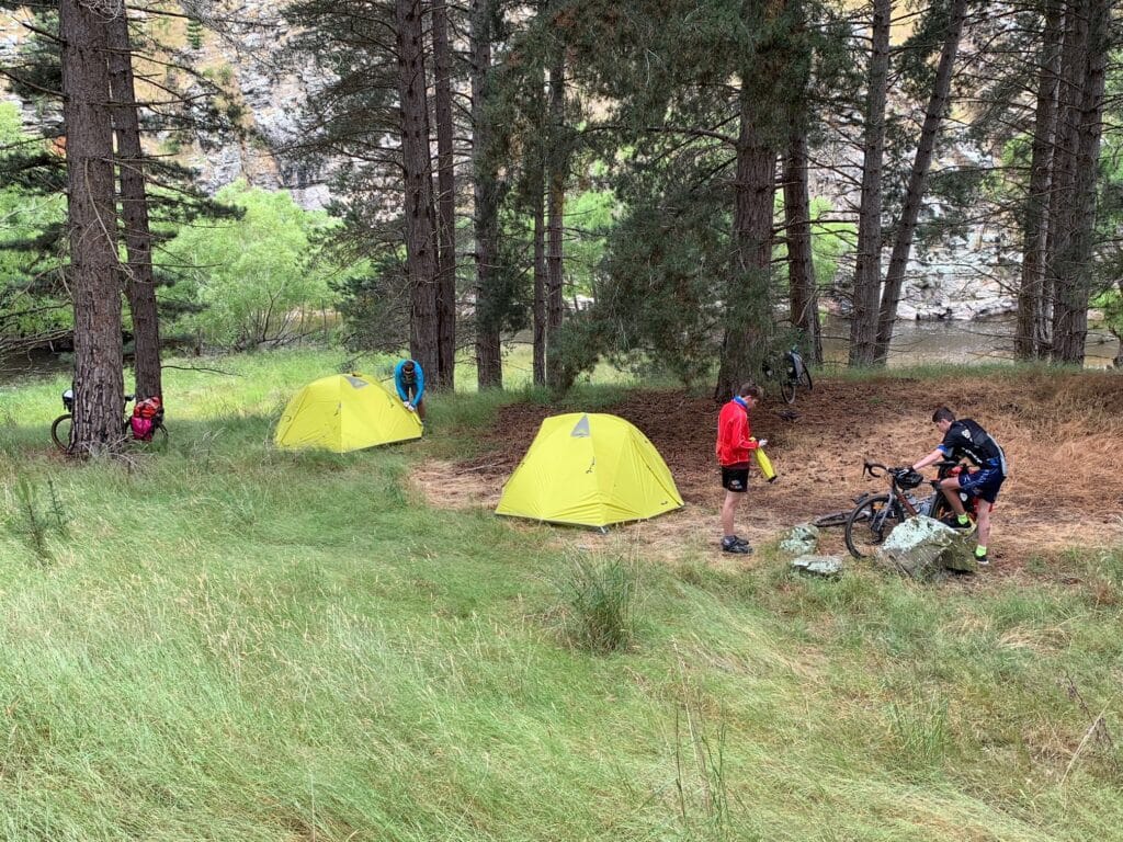 After roughly 30 kilometres, we reached our stop for the night — a free camping spot beside the Taieri River, north of Hyde. Tents up, dinner cooked, and the rain finally easing, we settled in for the night listening to the river run and the soft hum of insects in the grass.