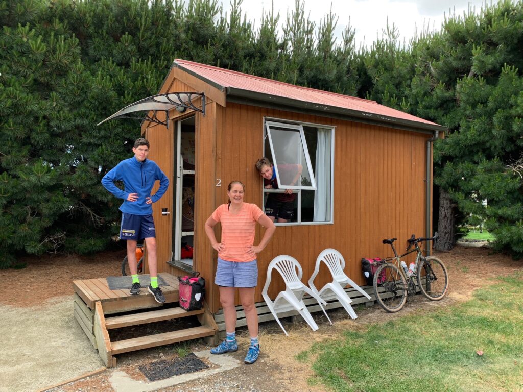 Christmas Day — though not the traditional one our boys were used to. We woke in the small town of Twizel, far from home, and set about creating a little festive spirit of our own. Our “Christmas tree” was a pine cone we’d found the day before, and the bikes were dressed with a few strands of tinsel we’d brought along. It wasn’t much, but it did the trick — a tiny reminder of Christmas morning before we packed up and rolled out.