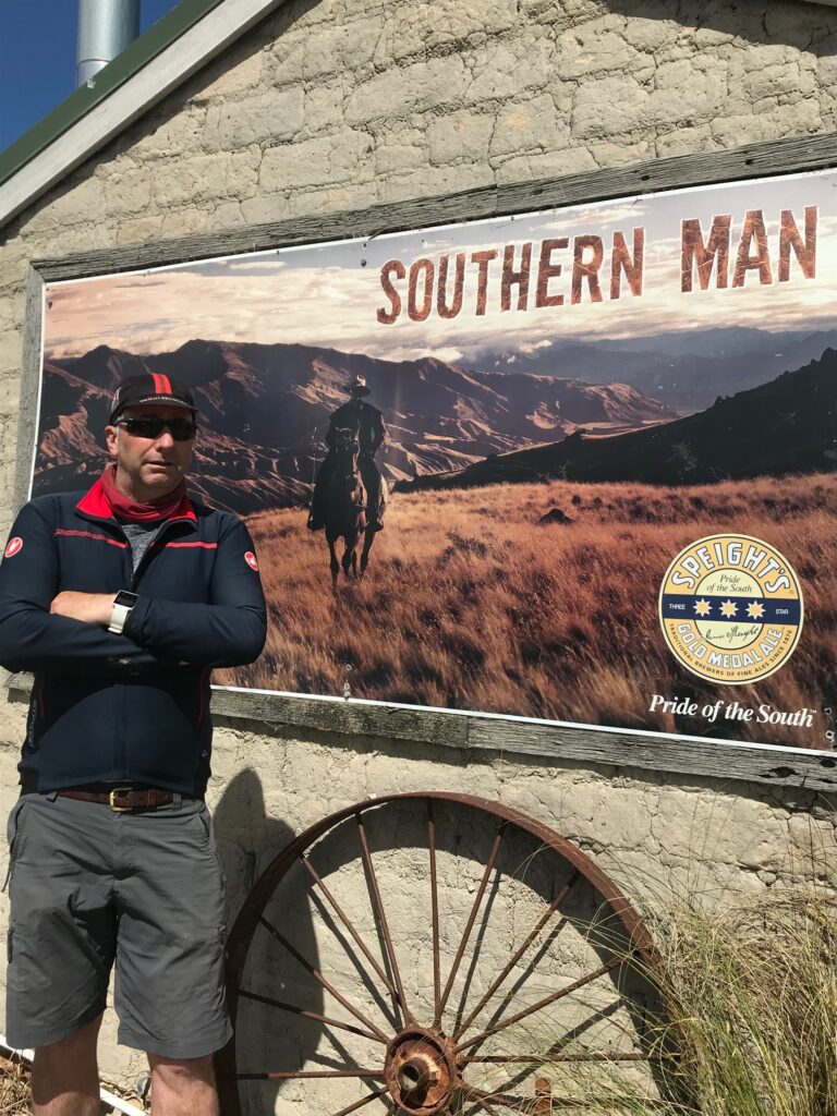 Crossing the dam marked our approach into Kurow, a small town rich in both history and pride. It’s known as the birthplace of Richie McCaw, legendary All Blacks captain and national hero — something the locals are quick to celebrate. We pulled into the Kurow Hotel, easily spotted by its distinctive purple-and-yellow façade, and toasted the day’s ride with a well-earned beer before rolling a short distance to our accommodation at the Kurow Motel.