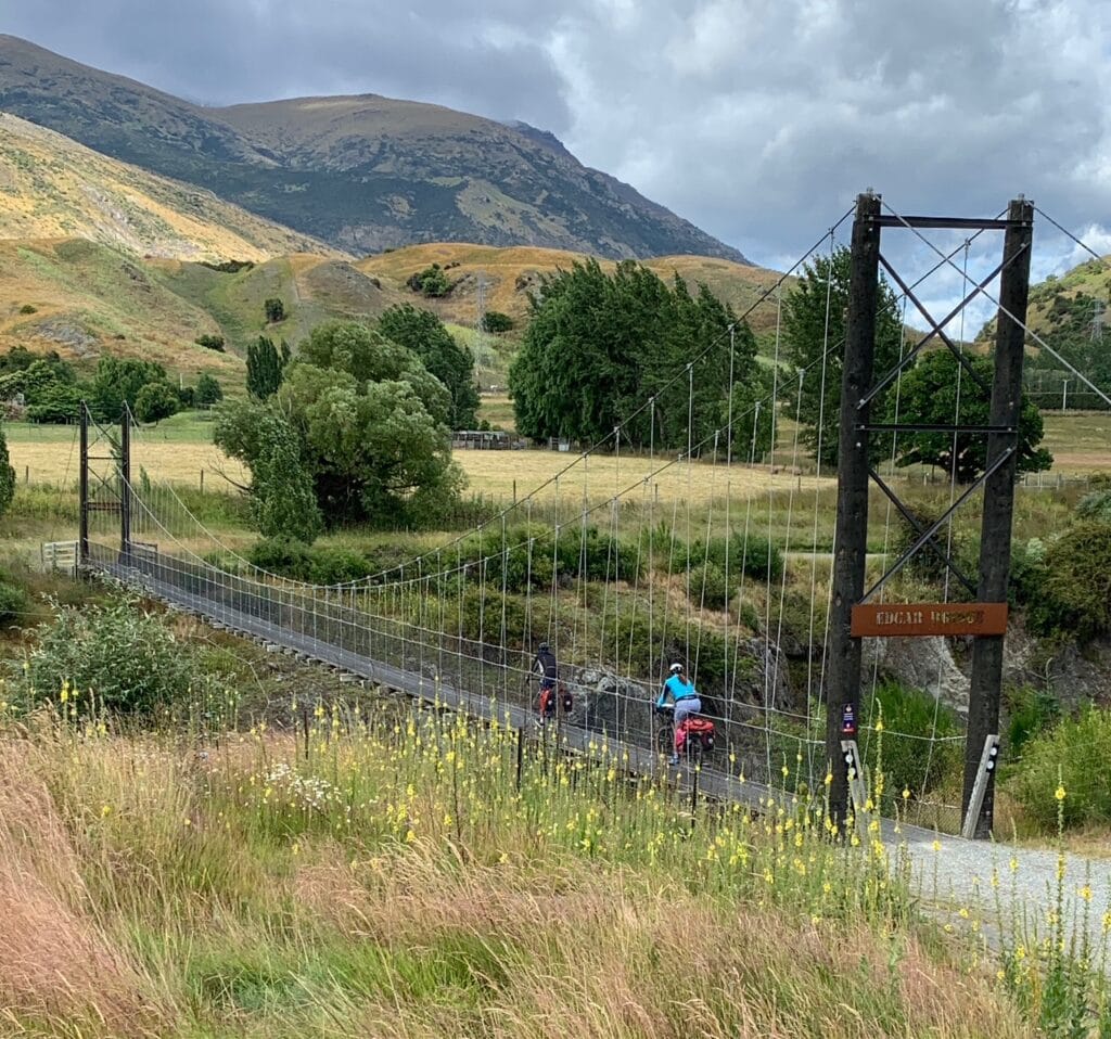 Crossing the bridge, we followed the Queenstown Trail as it climbed gently above the valley floor, offering sweeping views over the river and the terraced vineyards below. The trail also carried us across the spectacular Edgar Bridge, a graceful span suspended high over the Kawarau River — one of the highlights of the ride — before turning gradually toward Arrowtown.
